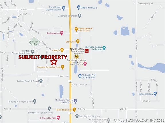 Position your business/investment in the middle of an explosion of growth with this prime commercial tract! Highest Annual Average Daily Traffic in Cherokee County of 23,900 per the ODOT 2021 Annual Average Daily Traffic Count. Zoned C3, surrounded by the largest subdivision in Tahlequah, national chain hotels, restaurants, car wash and across the street from Cherokee Casino. Within 5 miles of Northeastern State University, Cherokee Nation W.W. Keeler Complex, Downtown Tahlequah, Cherokee Springs Golf Course, Northeastern Health System and OSU College of Osteopathic Medicine. Recent investments totaling $434 million that have broken ground or completed in Tahlequah include the Durbin Feeling Language Center, CN Career Readiness Center offering training programs for trades, the six story CN Hospital and a CN housing project. Just a little further and Tahlequah boasts Lake Tenkiller and the Illinois River. All of these are also within 5 miles of the subject property. Be a part of the growth and future of Tahlequah at an amazing price! Property is accessed through a filed cross access agreement behind Casey’s General Store.