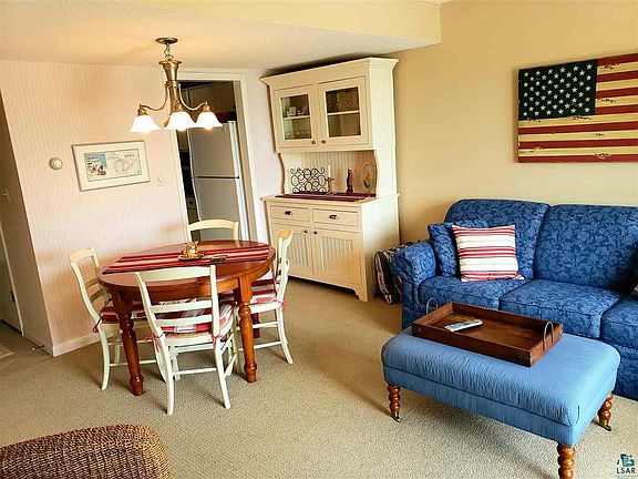 Two story end unit Lake Superior waterfront condo with an attached boat slip. What a wonderful way to vacation and effortlessly explore the Bayfield Apostle Islands. 2 bedrooms, 1 bath, and beautiful sun deck to enjoy breathtaking views. Fully furnished, and could be turned into a rental for passive income if one desired.