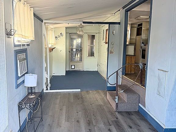 2 bedroom 1 bath. Attached shed/work area. New flooring in the living area. There is a washing machine hook up.