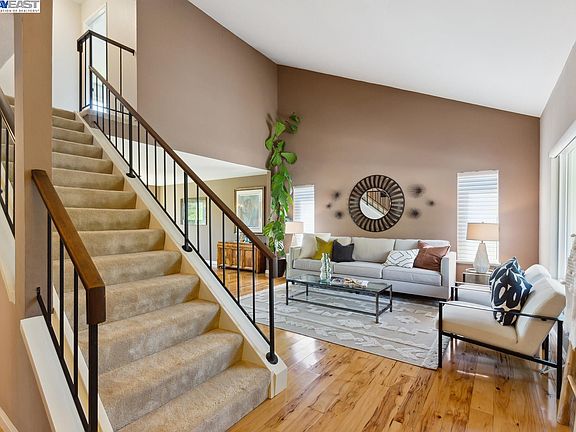 Welcome to this stunning 4 bed, 3 bath home in the highly sought-after Highland neighborhood. Boasting a prime location, this residence is sure to captivate your imagination. Step inside and be greeted by the elegance of hardwood flooring that spans the entire first level, creating a warm and inviting atmosphere throughout. The main floor hosts a convenient 1 bed, 1 bath layout, providing flexibility and accessibility for guests or multigenerational living. As you ascend to the upper level, prepare to be mesmerized by the breathtaking panoramic bay views that greet you from every bedroom. The backyard is a true oasis, adorned with abundant fruit trees including figs, avocados, apricots, lemons & much more. The backyard features artificial turf, creating a low-maintenance and picturesque setting for relaxation and entertainment. The front yard showcases a rock garden, offering a visually appealing and low-maintenance landscape that perfectly complements the modern lifestyle. The kitchen has been thoughtfully updated, featuring a professional 6-burner gas range and hood, granite countertops, and a designer backsplash. Don't miss out on the opportunity to make this exceptional residence your own and experience the true meaning of comfortable and stylish living.