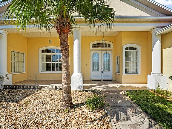 Welcome to this spacious custom-built, pool home located in the desirable gated community of Pristine Place. Offering 3,563 square feet of living area, this spacious 5-bedroom, 3-bath, 3-car garage residence includes a home office, that can double as another bedroom and sits on an oversized .34-acre lot. This elegant home combines functionality, comfort, space and value! You will be impressed by the massive paver driveway and walkway, lush landscaping, and inviting front porch, perfect for enjoying a quiet morning in your favorite rocking chair. Inside you will step into the formal living room and dining room areas. You will find high ceilings, 8-foot doors, archways, and tray ceilings that gives this home an expansive feel. The floor plan is ideal for entertaining, featuring a grand room that flows seamlessly into the gourmet kitchen and casual dining area. Elegant maple wood floors run through the main living areas and primary suite, complemented by beautiful tile in the kitchen. The kitchen is a chef’s delight, complete with granite countertops, ample cabinetry, a breakfast bar, and views of the solar-heated saltwater pool with included pool fence for safety. French doors and sliding glass doors open from multiple rooms to the expansive double covered lanai, creating a wonderful indoor-outdoor living experience. The private pool area offers the perfect space for relaxing or entertaining year-round. There is a new fenced in back yard perfect for a outdoor play area or small pets. The owner’s retreat is filled with natural light and features a soaking tub, double vanities, walk-in shower, and his-and-hers walk-in closets. A 3-way split floor plan ensures privacy for all bedrooms. The 4th bedroom is oversized and ideal for use as a playroom, media room, or craft space, while the 5th bedroom serves as an en-suite with a shared pool bath—perfect for guests or multi-generational living. Additional highlights include a 32’ x 6.5’ laundry and storage room with utility sink, storage racks, and included washer/dryer, plus a 3-car garage with one of the bays having a dedicated EV charging station. Recent updates and upgrades: Roof 2023, Saltwater pool conversion 2023, Solar pool heater with 10-year transferable warranty 2024,Water heater 2025, Garage door opener rebuilt with 7 year warranty 2025, 240V generator hook-up 2025, New lanai screen and New variable-speed pool pump 2025. Residents of Pristine Place enjoy a wide range of amenities, including a community pool, fitness center, tennis courts, playgrounds, and a clubhouse with rentable event spaces, plus numerous neighborhood activities throughout the year. This home truly has it all — space, updates, and resort-style living in one of the area’s most sought-after gated communities. Schedule your private showing today!