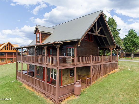 Whether you're seeking a prime investment property or a personal retreat, this true log cabin in one of the top neighborhoods of the Smokies offers it all! The main level features a spacious great room, kitchen, master suite, and a large deck with stunning mountain views. Upstairs, enjoy a catwalk, guest suite, sitting room, and arcade. The basement boasts a theater area, bunks, bonus sleeping space, and porch access.