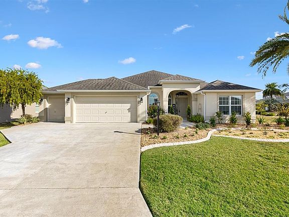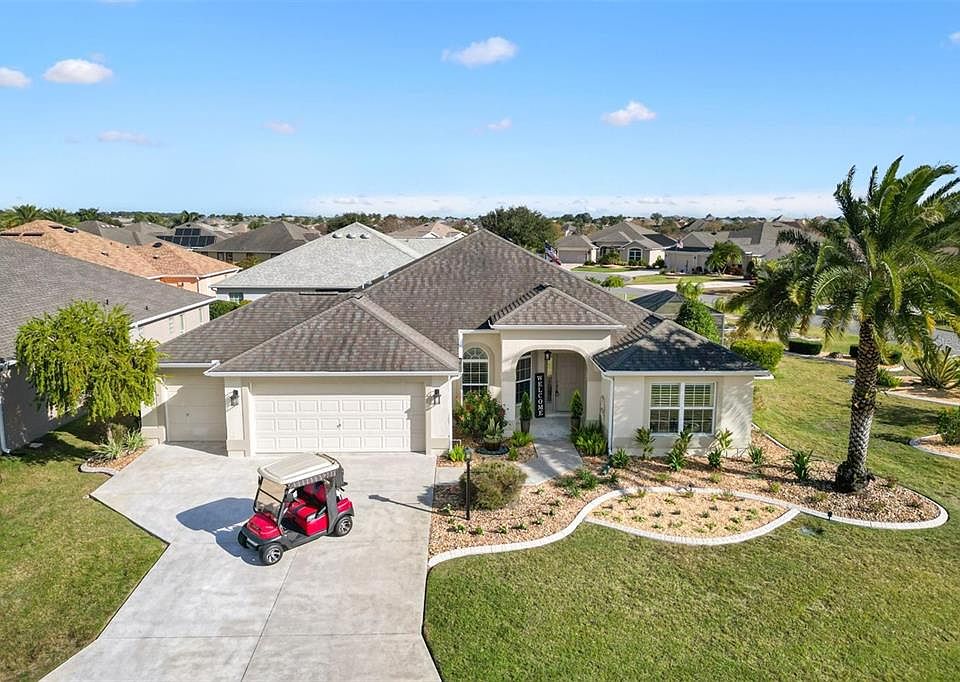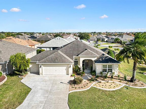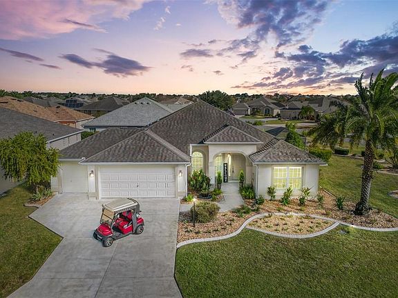 Located in the highly desirable Village of Charlotte, this beautifully maintained Designer Gardenia model offers 3 bedrooms and 2 bathrooms (the third bedroom does not have a closet) and features thoughtful upgrades throughout. Situated on a corner lot with ample space for a future pool, the home also includes the rare and highly sought-after golf cart garage. You’ll be greeted by brand-new front landscaping with carefully selected plants and flowers, along with added privacy plantings in the rear. Inside, the home impresses with plantation shutters throughout, brand-new light-toned laminate flooring, updated light fixtures, fresh interior paint, elegant crown molding, and—best of all—no popcorn ceilings. The spacious owner’s suite is a true retreat, featuring a tray ceiling with crown trim, dual closets, dual vanities, and a Roman walk-in shower with floor-to-ceiling tile. A private water closet and abundant cabinetry, including a convenient laundry hideaway basket, complete the space. The kitchen is both functional and inviting, offering beautiful cabinetry with ample storage, pot drawers, a dedicated trash bin area, and two curved windows accented with custom plantation shutters. The second bathroom is equally well-appointed, with tile extending from the tub to the ceiling. Additional highlights include an interior laundry room with cabinetry and a deep sink, a screened lanai that wraps around the corner of the home for expanded outdoor living, and a built-in bar area ideal for entertaining. Practical upgrades include a whole-house water softener, solar attic fan, brand-new water heater, and garage storage cabinets. The purchase also includes an Electric Club Car Presidente. This move-in-ready home seamlessly combines style, comfort, and thoughtful enhancements in a prime location. Call today to schedule your private showing.