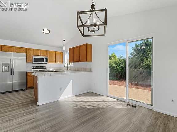 Welcome to this beautifully updated 3-bedroom, 2-bath home just 8 minutes from Fort Carson and 10 minutes from Peterson Space Force Base! Enjoy breathtaking views of Pikes Peak and an unbeatable location only 2 minutes from Soaring Eagle Elementary and the Colorado Springs Airport. Inside, you’ll love the recently updated flooring and brand-new carpet, along with modern light fixtures that brighten every room. The open layout creates a welcoming feel, with plenty of space for entertaining or relaxing. A spacious garage adds extra storage and convenience. This home perfectly combines comfort, style, and location—making it a rare find in Colorado Springs!