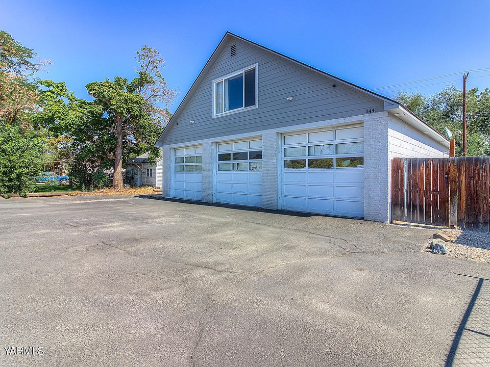This one of a kind property was originally a fire station that has been converted into a two level home with a very large 3 car garage/shop. The lower level of the home has two bedrooms; one non-conforming, laundry room, and open plan living room and kitchen. The upper level consists of one great room with original wood floors. Lots of possibilities with this RS zoned property.