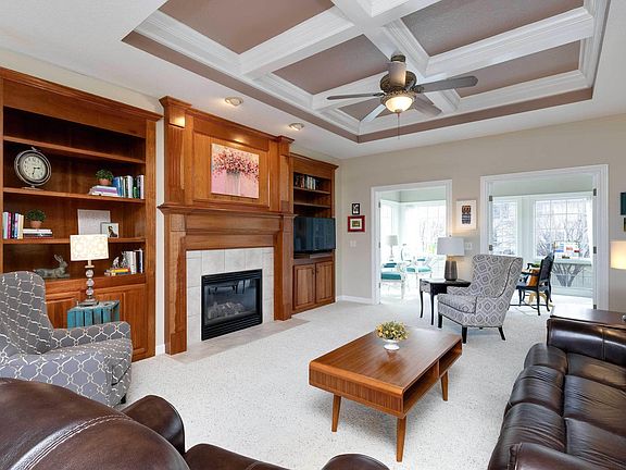 Wonderful 1 1/2 story home in ValleyWynds with main floor primary suite. The bright and airy foyer opens to the trayed great room with fireplace with custom built-ins and the sunroom! Kitchen with maple cabinetry, solid surface countertops and stainless steel appliances opens to the deck, and informal and formal dining areas. The private, primary suite opens to the deck and has double sinks, Jetted tub, shower and walk-in closet. White trim and 9' ceilings throughout. Basement with many daylight windows includes a bedroom, bath, rec room with built-in entertainment center, game room with built-ins, office or exercise room, a custom 10 X 13 wet bar with a fireplace and a huge walk-in closet for extra storage. Den/Office in basement is currently an exercise room. An office also works well in one of the main floor bedrooms or the upstairs bedroom suite. Private get away in the back yard with the in ground, heated pool, hot tub, and beautiful stone patio with fireplace! Roof 2018, Garage Doors 2020, Hot Tub replaced 2021, Pool Pump 2022, Refrigerator 2022, New Pool Filter System 2023.