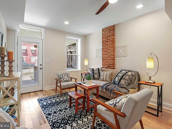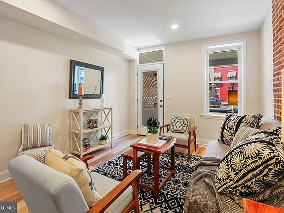 Gorgeous professionally rehabbed Hampden home ! Bright and sunny classic front porch home steps to all that Hampden has to offer, just two blocks from the Avenue . High quality, upscale rehab w hardwood floors throughout and exposed brick accents . Generously sized chefs kitchen w island, quartz countertops ,custom lighting, slide in range and all stainless steel appliances. Powder room on the main level . Smart upper level layout - primary bedroom with ensuite bathroom . Primary ensuite bathroom featuring walk in stall shower w designer tile selections , glass shower door and double bowl sink. Generously sized secondary upper bedroom, with hardwood floors and ceiling fans. Upstairs hall bathroom w tub/ shower combo as well as designer tile selections. Upper level laundry area. Waterproofed lower level with finished flex space - could be third bedroom, office, den or guest area. Nice, grassy fenced in front yard for your gardening projects !