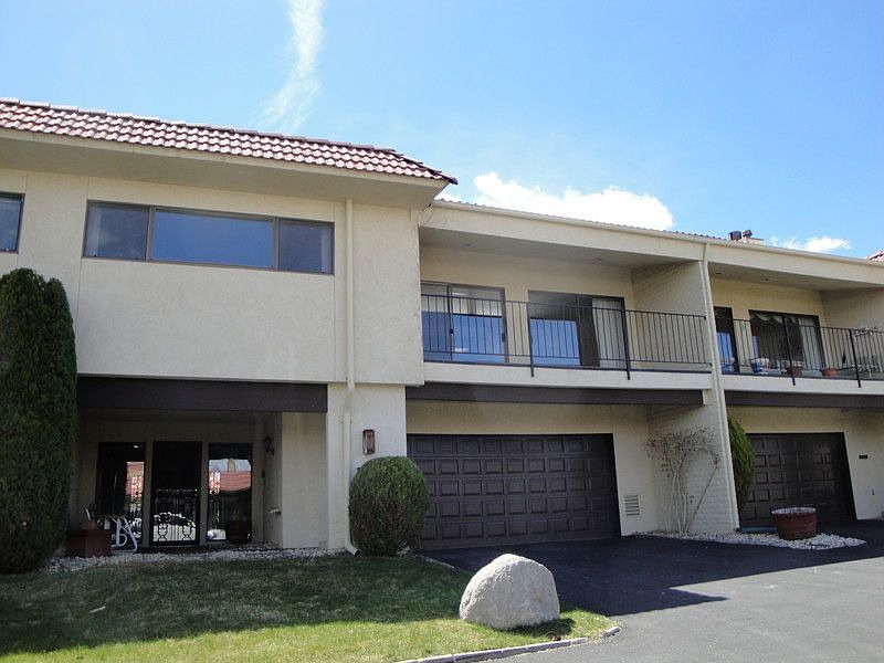 This is a 2 bedroom, 2 bath, 2 car garage condo located in Skyline Villas. It is 2 stories 1,716 square feet. The downstairs has a large unfinished bonus room. The living room has a gas fireplace and balcony with views of the city.The dining room has a built in hutch. The kitchen has all new stainless steel appliances. The oven and microwave are also convection ovens. The master bedroom has his and her closets. The master bathroom has separate shower and bathtub. Washer and dryer are also new. Lots of space and storage in this large two bedroom condo with too many upgrades to list them all. It is a must see.