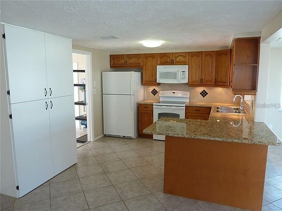 BEAUTIFULLY REMODELED IN 2013. 2/2/1 IN HOLIDAY. $425 1 YEAR HOME WARRANTY INCLUDED. ALL MAPLE CABINETS, THICK GRANITE COUNTERS WITH BREAKFAST BAR. ALL TILE FLOORING, PAINT, BATHS UPDATED, NEWER WINDOWS. SHINGLE ROOF REPLACED 2018/2019. FENCED YARD WITH BRICK PATIO AND SCREENED PORCHES FRONT AND BACK. CLEAN AND FRESH AND READY FOR MOVE IN. NOT IN FLOOD ZONE - X ZONE