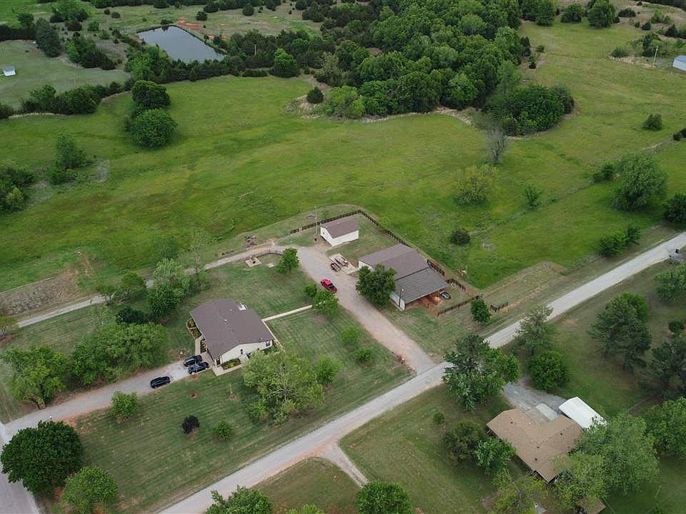 Beautiful 22 acre ranch centrally located to accommodate minimal drive time and easy access throughout the state. Property is situated on a paved road less than 5 minutes from I-44 access and Chandler city amenities. Property boasts an upgraded ranch style 4 bedroom 2 bathroom home with a full basement. Upgraded kitchen, complete with pantry and open floor plan to dual dining areas perfect for entertaining and gatherings. Bonus room provides a view of the barn, pasture and shop with plenty of natural lighting and storage. Take a break in the hot afternoon in the shade on the covered porch or look up at the sprawling open sky on the uncovered back patio. Keep the livestock comfortable in the spacious barn complete with 7 stalls, wash rack, tack room, feed room and hay loft. Roll up both doors on either end of the concrete alley way to enjoy the breeze. Large lean-to off the west side of barn is equipped with wired lighting, roll up door, cattle working chute and pens. Shop is complete with a concrete floor, roll up doors on both ends, full electric and installed shelving. Buildout in shop has kitchenette, hot and cold water and full bathroom, as well as additional cupboard and closet space. Additional concrete pads on property could be utilized for pull-through overhead feed bins, trailer parking and/or a hot walker. New water heaters have been installed in both the barn and the shop within last 60 days. Sellers are offering a 14 month home warranty on all acceptable offers. Additional 3.41 acres could be purchased with property (see MLS #'s 10699, 10701 and 10703). Owner prefers to sell full acreage (25.41 acres) together. Taxes were derived from assessors office for entire property, actual taxes for reduced 22 acre property will vary. Buyers can contact assessors office to obtain an estimate on reduced parcel.