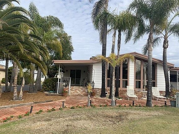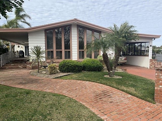 Location! Location! Living on the "circle" just steps away for the main club house, pool and other amenities puts you in the heart of Rancho Carlsbad, a 55+, land owned community. This 2 bedroom/2 1/2 bath, 2,356 sq.ft. home features plantation shutters on all windows inviting views of the pond and common area grounds. The largest lot in the park with a prime corner location allows for red brick lined driveways leading to a separate enclosed carport and a drive through porte-cochere--both with direct home access. Please make an appointment to see the formal living room/dining room, eat in kitchen, family room, office and bonus room. This one of a kind home is a rare find originally built for one of the original developers of the community.