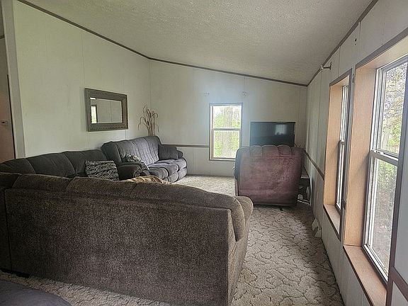 Well cared for 2 bedroom 2 full bathroom modular home in a rural location offering 3acres of land. The primary bedroom offers double closets and an ensuite with a separate tub and shower. Spacious kitchen that includes the refrigerator, gas range, and microwave. Detached two car garage with overhead storage. Newer roof. Beautiful pond. Location is rural and orivate but highways are easily accessible.