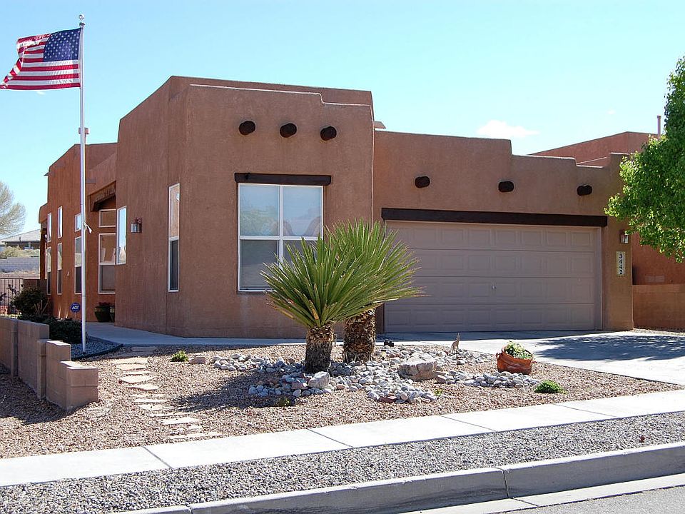 You'll love this captivating, well-maintained, 1-story Pulte home with it's open, flowing floor plan and splendid appointments throughout. This popular Lapis model features 3 bedrooms, 2 bathrooms, a 2-car garage and 1,560 sq ft of generous space to move about. Upgraded features include tile flooring, exposed wood beams, a jetted master tub, custom built-in desk and shelving in the third bedroom, and a deck in the fully landscaped back yard.