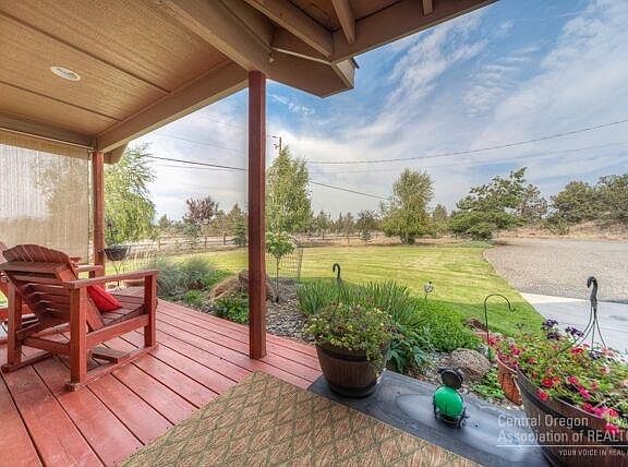 Oh my! The perfect equestrian property/acreage with Cascade & Smith Rock views. A beautiful 2160 sq. ft. custom built home on 5.16 acres just a few miles NE. of the City of Redmond. A 3BR/2.5 bath. Wonderful front and rear porches, additional patio areas, two massive rock outcropping lava tubs with 360 degree views. BLM land is nearby for your horses. Easy access to loafing shed and hay storage, totally fenced for child and animal safety. Soft round pen, new roofed storage, a 12 X 12 storage bi/ing. Lovely!