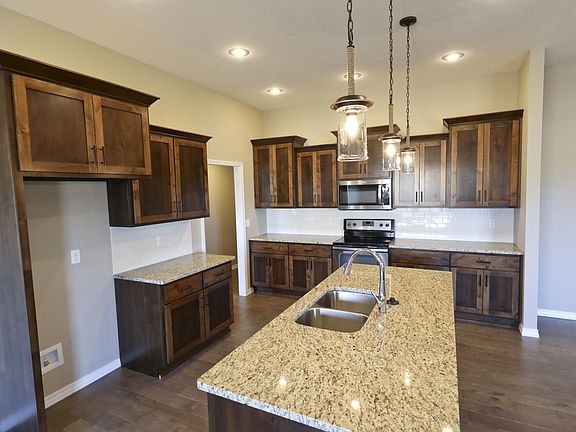 Open Sat & Sun Noon to 4:00...WooHoo!Buy now before Builder reverses this 'steal of a deal'!New in SW Spfld! Stained, rich cabinetry& floors and industrial style pendants!Open kitchen overlooks the living area and there is an impressive island in the kitchen area. Appr 2111 SQ ft , 4 BR with split floorplan.Stone fireplace in living room, stainless steel appliances, large pantry, spacious laundry room and wooden shelving in all the closets/pantry! Engineered hardwood flooring thru liv/din/kit/entry and hallway. Soaker tub and walk in shower in the master with 9x10 closet! call for your private appt.