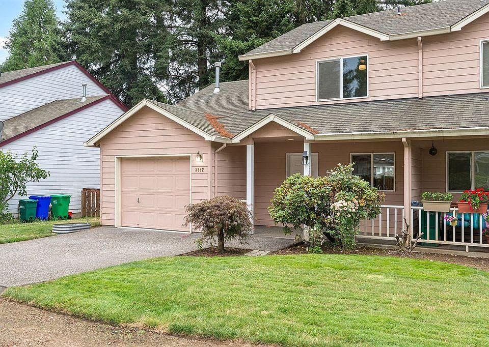 Spacious 3 bed, 2 bath. Don't miss out on this rental! Featuring a very nice open floor plan with spacious bedrooms, Enjoy the fresh look with new paint throughout, plus a brand new kitchen floor, countertops, backsplash, dishwasher and a sink with a window view. This thoughtfully designed layout offers one bedroom and a full bath downstairs, ideal for guests or a home office. Upstairs, you'll find two more spacious bedrooms and another full bath, providing ample space for everyone. The property includes a garage and a backyard for your enjoyment and relaxation. Located in a quite area. This home is conveniently close to schools, grocery stores, restaurants and public transportation. Easy access to I-5, I-205, and 99E makes commuting a breeze. Don't miss out on this must-see home. Schedule your tour today! $200 monthly charge for water, sewer and landscaping. 11 months lease. One small pet allowed.