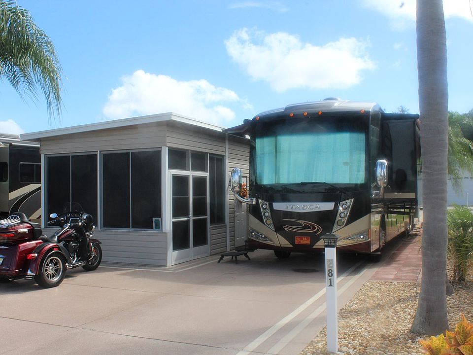 Own your own piece of paradise in this gated over 55 community located in Zephyrhills, FL. This deeded lot with painted parking pad for your RV and a lanai is in the Class A Motorhome Only section of Emerald Pointe RV Resort. The lanai is 12' X 42' and has a 10' X 12' screen room on the front. There is a large full bath with shower and fully equipped kitchen with laundry. A murphy bed in the main living room converts the lanai to a separate apartment for your guests. When you are at Emerald Pointe you have plenty of room to extend your space into the lanai. Store your golf cart or motorcycle securely in the screen room when you depart for the season. There are lots of activities in the community and you can participate in as many or as few as you like. Spend your time in the pool or spa during the day or play bingo and cards in the evening. Emerald Pointe is close to the airport, shopping and tourist attractions, so there is always plenty to do.