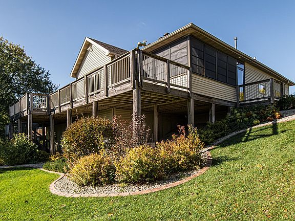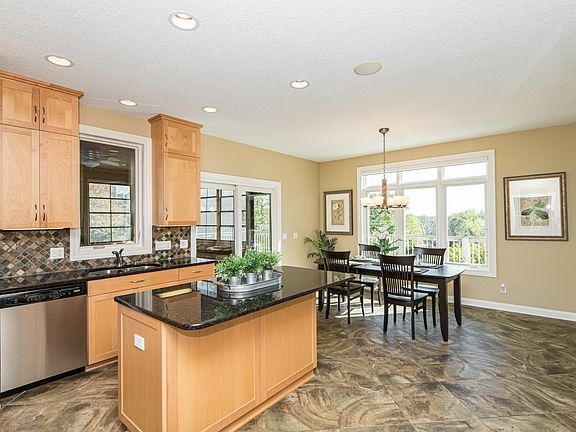 A rare find in lots! Backing to an oulot providing privacy &countryside views. Top quality construction w/ loads of extras & high end materials. Main floor living w/ #1 grade maple floors flowing through the foyer, great room & large study. Beautiful Owner's suite w/ views & deluxe bath w/heated floors, tub & tiled walk in shower. Spacious U-shaped custom maple kitchen ( cabinets to ceiling) features 2 sinks, granite tops and stainless appliances, walk in pantry, island & large informal dining that is adjacent to the screened porch. As you walk in you will notice the full wall picture window & stunning fireplace. Other upgrades include; 9 foot ceilings, paneled doors, 2nd fireplace, heated tile in wet bar & lower bath, granite on all bath vanities,Pella windows, composite decking, heated garage, built in ceiling speakers & 2 workshop spaces. The stone front gives it very stunning curb appeal along with the amazing landscaping all edged with concrete curbing. End of cul-de-sac location