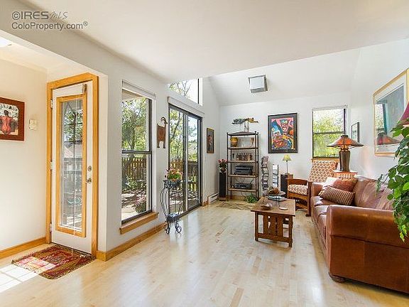 Colorado living at its best! You will love this move-in ready, meticulously maintained home with its brand new maple floors, open floor plan, contemporary kitchen, French doors, vaulted ceiling and lots of sunlight. This charming corner condo in the wonderful Shanahan Ridge community features a peaceful, private patio with mountain views, prime location across from community gardens & pool, and you can walk from your front door to hiking trails and the Skip bus route! A rare find - Don't miss!