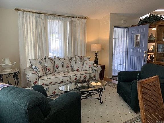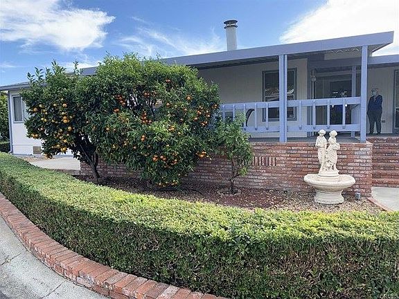 Take a moment before entering this 3/2 immaculately maintained home to sit on the large front/side porch, look across the curved corner lot to the beautiful jacaranda trees in the small park. Then take a look at your own side/back yards where five orange/tangerine/lemon trees are ready for you to pick. Once inside the home, each room holds a treasure: plantation shutters in the living room, french doors from the side porch open to the family room and with a large stone gas fireplace. The remodeled eat in kitchen also opens to the family room, is bright/inviting with two garden windows/skylight, newer appliances, granite counter tops and a separate breakfast bar. There are 3 closets in the MB, with soaking tub and separate shower in the MB. One of the bedrooms can do double duty as an office with a built in oak desk unit. The laundry room with a wall of storage cabinets and newer washer/dryer lead to the enclose covered carport and 2 sheds: one is a well equipped man cave work/shop and the second is a separate storage shed. The beautiful home is located in Rancho Carlsbad, a 55+ gate guarded community featuring club house with ballroom, card/billiard/living rooms and the library stocked with books, movies, magazines and games. Cross the wooden bridge to the large heated pool/spa, work out room with sauna, indoor shuffleboard courts, Ping Pong Palace and craft room with kilns. Visit the tennis/pickle ball/bocci ball courts, bring your dog to the fenced dog park or try you hand at gardening--a plot is yours including water if you choose. And then head back to that great porch at 3443 Don Alvarez, happy that you chose this porch and Rancho Carlsbad as your new home!
