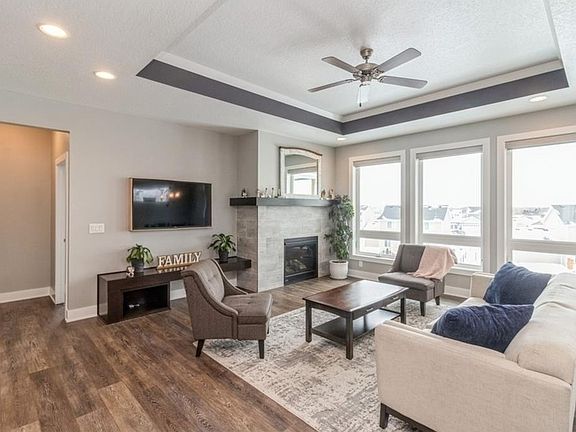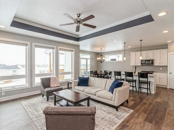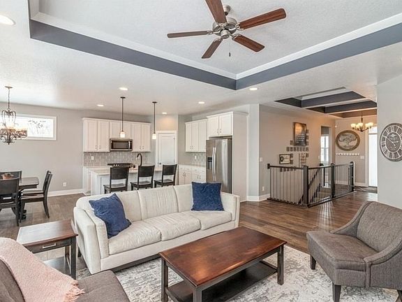 Welcome to this beautiful Destiny ranch plan home. You will feel right at home as you are greeted by a gorgeous entryway and great room lined with nearly floor to ceiling windows. Main level includes fireplace, large kitchen with lots of cabinets, an island and large pantry. Off the kitchen is a deck with a sunshade that overlooks a large fenced in yard with irrigation. You have 3 bedrooms and 2 baths up as well as a convenient laundry room. The finished walkout basement offers a large family room, two bedrooms, full bath, wet bar, and HUGE storage room. Plenty of space for entertaining family and overnight guests! Added features include all windows covered in custom neutral blinds, custom closets, Radon system installed, and extra landscaping in front. This well cared for home is must see!