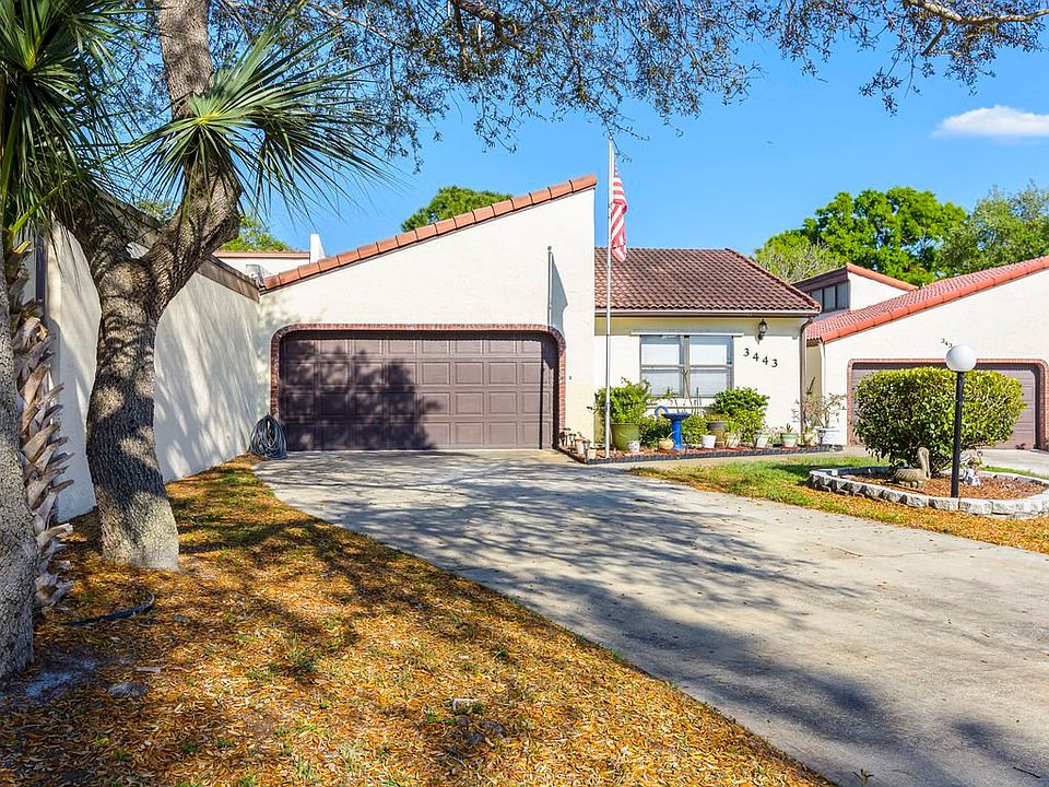3 sizable bedrooms , 2 with their own en suite bathrooms, along with the living area of 1572 sq. ft with doors leading to the enclosed sunny courtyard. The large back porch area is ideal for a BBQ or just an area to sit an gather in the cool of the evening. The roof is tile and was replaced in 2006 , the A/c in 2015 and the water heater is leased. Lawn maintenance is covered in the HOA fee and also allows you use of the three community pools and the park area.