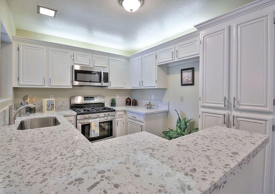 Gorgeous Meadowbrook 2-Bed/2-Bath condo in penthouse location with vaulted ceilings for lots of light! Peaceful gated community with gardens, trees, pools and spas. Top floor unit with nice open views and no one lives above you. This home is loaded with tasteful design and upgrades including gleaming quartz counters in kitchen; baths, new stainless steel refrigerator, stove & microwave, new washer & dryer, professionally painted interior, freshly installed carpet & flooring, faucets, toilets, baseboards, ceiling fans, LED lights & more! Great commuter location with convenient access to ACE & Amtrak Train, BART, Dumbarton Bridge & freeway access. Great central location-close to shopping, restaurants, Alameda Creek & trail, Quarry Lakes. Great schools: Oliveira Elementary School (8), Thornton Junior High School (10) & American High School (9). The monthly rent includes water/sewer, trash removal and HOA. Personal covered parking spaces.