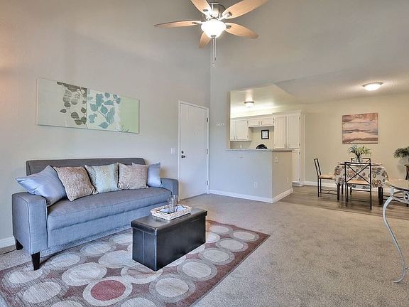 Gorgeous Meadowbrook 2-Bed/2-Bath condo in penthouse location with vaulted ceilings for lots of light! Wonderful gated community with gardens, trees, pools and spas. Top level unit with nice open views and no one lives above you. This home is loaded with tasteful design and enticing upgrades including gleaming quartz counters in kitchen; baths, new stainless steel refrigerator, stove & microwave, new washer & dryer, professionally painted interior, freshly installed carpet & flooring, faucets, toilets, baseboards, ceiling fans, LED lights & more! Great commuter location with convenient access to ACE & Amtrak Train, BART, Dumbarton Bridge & freeway access. Great central location-close to shopping, restaurants, Alameda Creek & trail, Quarry Lakes. Great schools: Oliveira Elementary School (8), Thornton Junior High School (10) & American High School (9). The monthly rent includes water/sewer and trash removal. Personal covered parking spaces. Please email or call 408-839-1898 to arrange viewing the condo.