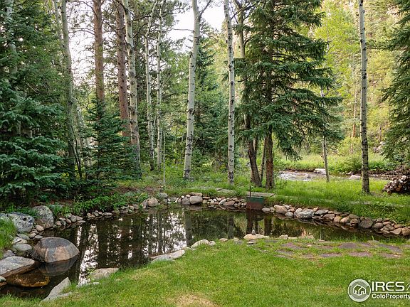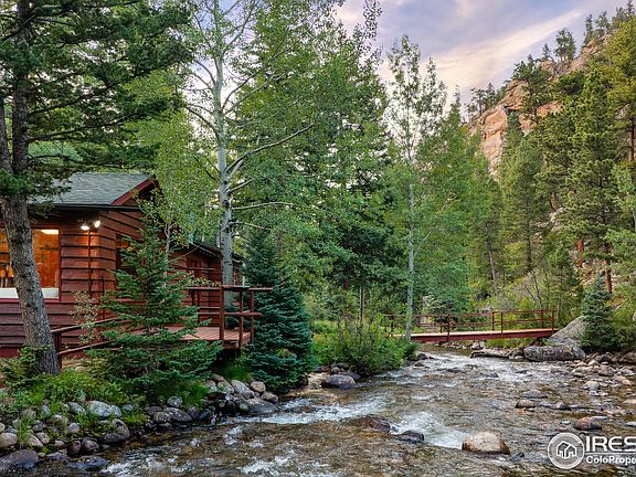 A rare unicorn. This property is worthy of that description. It's so unique... qualified prospective purchasers should schedule a showing with their buyer agent because photos don't do it justice. This property has a 1-bedroom 900 SF historic cabin with the best river frontage we've seen plus a separate bunkhouse that houses 2 additional sleeping areas. Bedroom count includes both buildings. A large, oversized detached 2-car garage also includes a 195-sq.ft. workshop that is already stocked with the tools the next owner will need. This magical property has not been available for sale in more than 70 years. It has been lovingly cared for by the same family for decades. Unlike other river locations, this land has over 2.4 acres of pristine frontage that includes flat, useable land, a pond, private foot bridge, dramatic rock outcroppings and a lovely meandering stream. It is private, quiet, wooded and has outstanding fishing access. The main cabin is beautifully maintained and offers an inviting warmth on the interior and spectacular views and access to the river from two large decks where you can entertain and enjoy the rushing sounds of the river. The location is ideal as it's a short drive to world-class recreational and hiking opportunities and Allenspark, Estes Park or Lyons. Because of the non-conforming nature of this historic property, it would probably not be approved for a short-term rental. It's best use is for someone to use it as their primary residence or a 2nd home retreat. Showings are by appointment only.