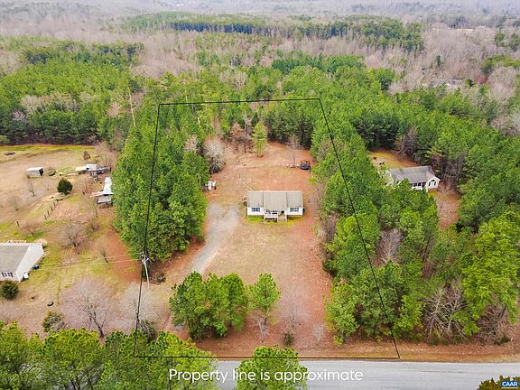 Welcome to 3443 Rock Island Road in Scottsville, VA! Located just 8 miles past the James River Bridge and town of Scottsville, this 3 bedroom/2 bathroom, 1,400 square foot ranch home, was built in 2006 and sits on 2.17 acres. As you pull into the property, there plenty of space for parking vehicles and outdoor entertaining! Back yard is private, leveled, and fenced in. The home features the popular spilt bedroom design (owners suite on one side and 2 guest bedroom on other) and high vaulted ceilings in the living room. Tons of natural light. There is a side door entrance leading into the laundry/mud room for easy kitchen access. Lots of kitchen space opens to the dining room. NO HOA. See Matterport video for a virtual tour. Home shown by appointment only. No propane tank on the property for the gas fireplace (fire in fireplace photos vitually staged).