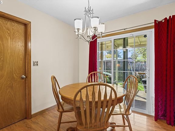 This beautifully updated 3-bedroom, single-level ranch offers the perfect blend of comfort and newer features within the last 10 years, including windows, roof, HVAC & hot water tank. The renovated kitchen features stainless steel appliances and beautiful cabinetry, while the living areas are bright and inviting, including a wood burning fireplace and updated bathroom, and the primary bedroom featuring double closets. All appliances will stay with the home, while you enjoy a large, fenced backyard and covered patio for your extended outdoor living, ideal for entertaining & BBQ’s plus a front porch for morning coffee. Giving you all the conveniences on one level, this move-in ready home is perfect for easy living and would be a wonderful new home to make you own, parks & schools within minutes! [Home Energy Score = 5. HES Report at https://rpt.greenbuildingregistry.com/hes/OR10237583]