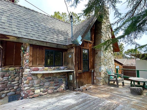 Welcome to this captivating mountain home! Step into the charming garden, pass by the inviting gazebo, and find yourself at the front door, reminiscent of a scene from an enchanting fairy tale. As you open the stained glass front door, you're greeted by the mudroom, boasting a flagstone floor, vaulted, beamed ceiling, and a cozy bench. Transition into the living room, where a grand wood-burning fireplace commands attention amidst tall vaulted ceilings. Tile floors throughout ensure effortless maintenance. The galley-style kitchen seamlessly connects to the living area, leading to a secluded bedroom with space for a home office. A second spacious bedroom features a walk-in closet and generous room for a king-size bed. The main bathroom offers a luxurious experience with a walk-in shower adorned with custom stone and tile décor, complemented by a tile sitting bath. A skylight overhead floods the space with natural sunshine and light, adding to the ambiance of relaxation. Upstairs, discover the expansive master bedroom boasting two walk-in closets and an ensuite bathroom featuring magnificent custom-designed tile. Glass block accents a deep tile bath, and a tiled countertop further enhances the unique beauty of the space. The garden, fully fenced and separate from the second unit, provides a tranquil retreat and in spring, is filled with native flowers and plants. The second unit, a cozy 386-square-foot ADU, boasts its own private patio, fruit trees and garden, along with a convenient 2-car carport. This unit is accessible from Piru Trail.