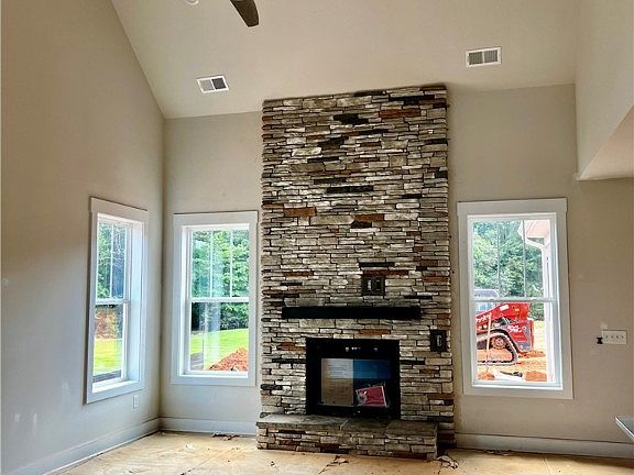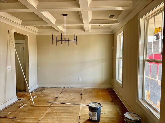 The Sutherland home offers over 2600 square feet of luxurious living space, crafted for those who desire both comfort and sophistication. The expansive front porch leads to a welcoming foyer and an adjacent dining room with coffered ceilings. The seamless flow between the spacious family room and the well appointed kitchen is perfect for entertaining. The large windows in the family room offer wonderful natural light and the gas fireplace with two story stone surround gives the room a cozy feel. The gourmet kitchen has an amazing double island with farmhouse sink, beautiful white cabinetry, light Quartz countertops, tile backsplash, under cabinet lighting, and stainless steel appliances including a double oven and gas cooktop. The adjoining breakfast area leads out to the covered back porch which overlooks the acre homesite. The Primary Suite is also on the main level for added privacy. Enjoy a generous walk in closet and spa like bathroom with double vanities and a beautiful Roman tiled shower with double showerheads and built in seat. Once you go up the grand Oak staircase with open rail that overlooks the living room, you will find three more bedrooms, all with walk in closets and two full baths. This home will be completed this summer so now is the time to make it your own. All our homes feature our Smart Home Technology Package including a video doorbell, keyless entry and touch screen hub. Our dedicated local warranty team is here for your needs after closing as well. With only 10 homesites, Chastain Ridge will be a great place to call home.