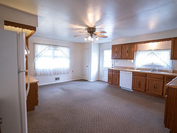 Being sold AS-IS, this spacious single level ranch home is ready for you to make your own. This home features a large eat-in kitchen, LARGE open living/dining room space, three bedrooms and full bath finish out this main floor! The basement can be updated to have THREE MORE BEDROOMS, a KITCHEN and another Living space! This home sits on just over an acre of FLAT land! Enjoy the LARGE COVERED PORCH off the main living space and views of the orchards across the street.