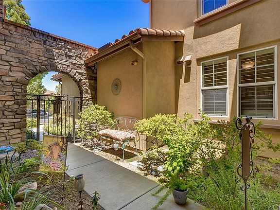 Welcome to this Tuscan-inspired, 2 BR+den single level home located in the Vista del Verde golf course community of Canterbury. Walk through the quaint walkway and enter into the exquisite living area with high soffit ceilings with crown molding, plantation shutters, laminate plank flooring and double sided fireplace. A great place to entertain! Enter into a Chef's dream kitchen with custom Ogee-edged granite counters, pendant lighting, newer Stainless appliances including a 5 burner gas cooktop, double ovens, microwave, recessed lighting, custom cabinetry and a large dining peninsula that opens to the family room with ceiling fan, fireplace and French door access to the patio. The large Master Retreat features high ceilings, ceiling fan and a French door to the outdoor area. The Ensuite has a newer custom glass shower enclosure, large soaking tub, dual sink granite vanity and sizable walk-in closet. The private patio features two ceiling fans, mature foliage with lots of greenery and is an ideal spot for hosting gatherings. The inside laundry is located off of the kitchen and leads to an amazing utility garage with epoxy flooring, workbench, ceiling fan, storage cabinets and floor to ceiling shelving. Additional features include newer paint throughout, high baseboards, crown molding, retractable front and back door screens, alarm system and water softener. The Canterbury HOA includes a community pool and spa. Close to freeways, shopping, restaurants, golf and entertainment.