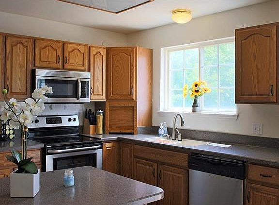 Beautiful two story with an oversized garage. All hardwood floors on main level and brand new carpet & pad on second floor. Brand new appliances in the kitchen! The doors from the kitchen lead out to a huge deck and a,big backyard with a 6ft vinyl fence for privacy!