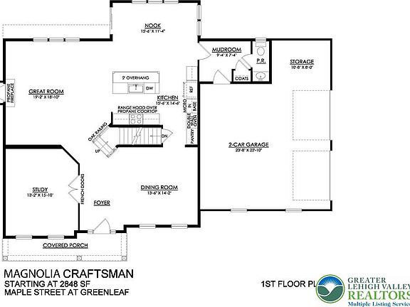 Step into opulence with The Magnolia, a stunning floorplan starting at 2820 sq ft. The Kitchen boasts a large island with seating, granite or quartz countertops, and a dining Nook surrounded by windows. The main level also includes a spacious Great Room, formal Dining Room, Private Study with French doors, Powder Room, Mudroom, and welcoming Foyer.