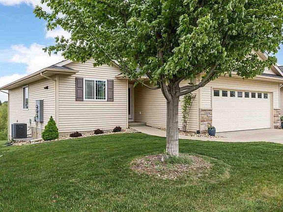 Welcome to this beautifully designed 3-bedroom, 3-bath condo in the sought-after Villas at Prairie Knolls. This home features hardwood floors and updated luxury vinyl plank (LVP) flooring in the great room and dining area, creating a warm, cohesive living space. The open-concept layout offers a spacious kitchen with a breakfast bar that flows seamlessly into the dining area and great room—perfect for both everyday living and entertaining. The primary suite is thoughtfully designed with a walk-through ensuite that leads into a large walk-in closet, which conveniently connects to the laundry area and drop zone. Step out onto the main-level deck with stairs leading down to the lower patio, where you can enjoy a tranquil view of the pond. The finished lower level provides a huge rec room, an additional bedroom and bathroom, and walk-out access to that peaceful patio setting—ideal for relaxing or hosting guests. Enjoy low-maintenance living in a serene community, just minutes from local amenities. Two pets permitted under 110 lbs, and no rentals are allowed. HOA dues are paid in full for the year. BUYER BONUS - HOA monthly dues are paid in full for the year, and the $3000 start-up fee is negotiable between the seller and buyer.Schedule your showing today!