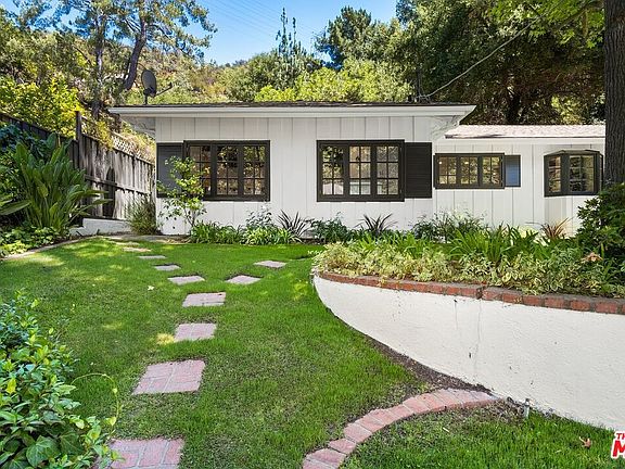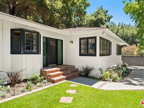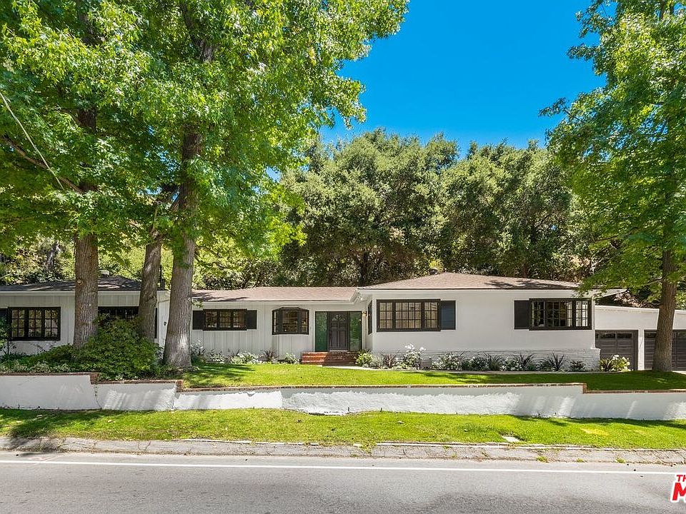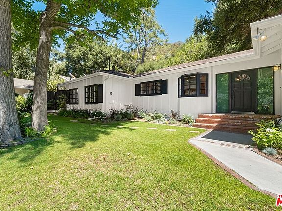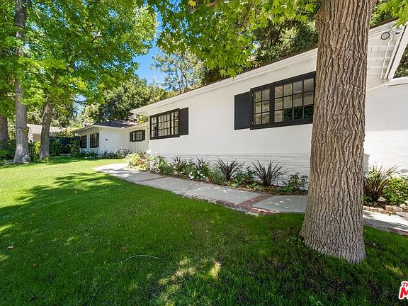 Peaceful Canyon Living, this home is perfect to enjoy our "new normal." When you enter into this one story Ranch style home, you are welcomed by an open floor plan with french doors and an abundance of gleaming sunlight. The living and dining room lead to a gourmet kitchen which will inspire many wonderful meals with its high end appliances and 700 bottle wine cellar. A spacious family room with beamed ceilings offers a fireplace and bar perfect for family gatherings. The BDR wing offers a sumptuous master suite with a secluded spa and water feature as well as two secondary BDRs that share a BR with skylight. Currently the third BDR is being used as an executive style office. The fourth BDR can serve as an attached guest home which has an airy feeling and high ceilings. When you step out to the enchanting backyard, you will feel as though you have escaped to a far away land. This backyard is perfect for entertainment, featuring a BBQ and mature trees, perfect for daydreaming.