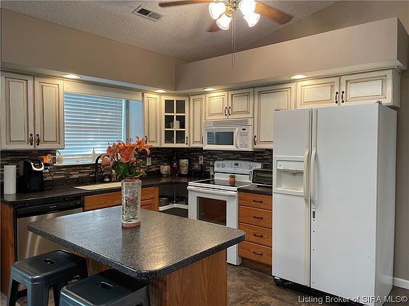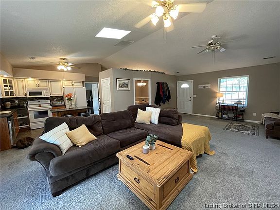 This oversized ranch has a great, convenient location close to Veterans Pkwy. and I65. Home has brick on 3 sides and vinyl accent on the back. There is a 2-car garage with an additional pole barn with a high overhead door. Super extra space for hobbies or storage! Vaulted ceilings with skylights and ceiling fans. Lots of closet space and the laundry is near the primary bedroom. Very attractive layout overall! So popular! Fenced backyard and covered patio. Come see; it will sell quickly!