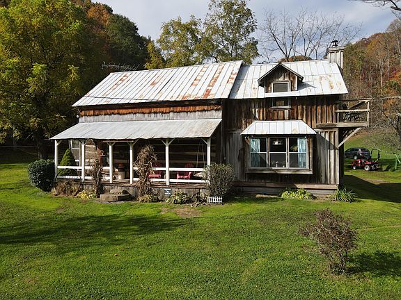 Valley Creek Farm and Sunrise Cabin. Peaceful, self-sustaining, and ''Almost Heaven.'' The 3 BR, 2 bath well maintained farmhouse began as a Civil War era log cabin and now features cheerful sunroom, flex space for office, a balcony, and porches. Enjoy unique features: a cozy fireplace, large kitchen with custom wood island and hand pump, upstairs custom cabinetry, and outdoor metal art work by artist, Mark Blumenstein. The 80 acres is versatile with lush pasture, garden area, a meandering year round creek, mature timber, 4 springs, chicken house, fruit trees, and grapevine. Sunrise Cabin is one room, located toward ridge and offers breathtaking easterly views. Outbuildings include springhouse, cellar, garage/storage, outhouse. Indoor workshop. Many ATV trails. Wildlife. Private drive. Additional Information on 3444 Snake Run Rd. Alderson, WV 24910 Located less than 6 miles from I64, Dawson exit, Valley Creek Farm and Sunrise Cabin is a sanctuary for self sufficiency, flowing water, springs, and nature. The property is combination of a true farm property featuring fruit trees, garden area, new chicken house, pasture and a true hunt/recreational property with ATV trails, a cabin, and plenty of wildlife. *Additional interior pictures forthcoming. Owners made some renovations and are currently painting.* 1. Property is approximately 80 acres. Sold by boundary. 2. Heat for house includes 2 wood stoves, propane wall heater, baseboard electric heat. 3. Stove pipe up the chimney is insulated. Cover on top is stainless steel. 4. Mineral rights convey. 5. Snake Run is the creek flowing thru property. 6. Previous owner chinked the house logs. Door is handmade by previous owner. House has American chestnut lumber (before the Wormy Chestnut.) 7. Matterport doc shows floor plan. Excellent versatile floor plan to use rooms as needed. For example, family room now used as downstairs bedroom; sunroom can be dining room, office space, etc. 8. Floor plan does not show the attached workshop and storage space. This space is considered "unfinished" space. Has electric, windows, outside entrance. Located outside kitchen area. Measurement forthcoming. 9. Hot water is Thermocyphon system, which is a method of passive heat exchange, based on natural convection, which circulates a fluid without the necessity of a mechanical pump. Excellent for self sufficiency. 10. Water for kitchen hand pump comes from a spring; water for the kitchen facet comes from the well. Thus, never without water. 11. ATV trails on the boundary and within the property. 12. Timber rights convey. Nice timber on property and could be harvested 2023. Owner is not harvesting timber. 13. During winter, current owner allowed previous owner to store items in outbuilding. Per agreement, items to be removed on or before May 31, 2022. 14. The private driveway is a shared road with 2 other owners. Road maintenance agreement Dec 8, 2021. 15.US Cellular Internet Garden area has asparagus patch. Fruit trees include peach and apple. Grapevine produces good grapes for wine. Sunrise Cabin- Elevation 2,610 ft. Faces east with long range views. Propane hookup. Owner brings water to site. Hoop up for cook stove and wood stove. Owner is not conveying current cook stove or wood stove.