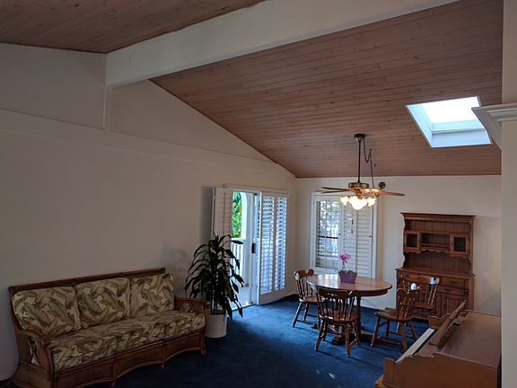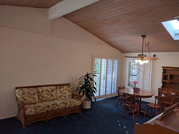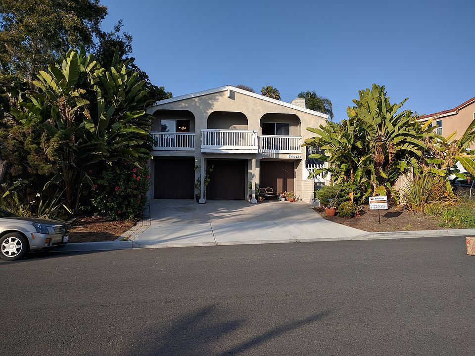 This charming custom 3 bed 2 1/4 bath homeis located in a very desirable quiet CapoBeach neighborhood .12ft high vaulted pineceilings, brick fireplace, skylights andPlantation shutters. 2 large sliders lead tocharming arched covered front deck - whichspans entire front of house. Open kitchen withview. Hardwood laminate floors in back 2bedrooms & bath. Back master bedroomopens onto a covered deck and is easilyconverted to Mother in law quarters. Lushmature orange and lemon trees.