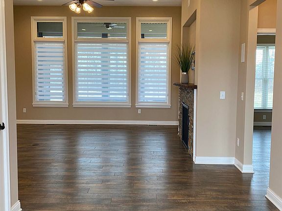 Wow! Wait Until You See this Awesome Villa with a Split BR, Open Floor Plan with 9' Ceilings Throughout. Fabulous Kitchen with Large Center Island (w/sink), Ceramic Backsplash, Quartz Countertops, White (Maple) Cabinets & Huge Walk-In L Shaped Pantry! The Dining Area is off the Kitchen & there is a Beautiful Stone Fireplace in the Great Rm. outfitted for a TV. Notice the Gorgeous, Custom "Silhouette" Shades in every RM! There is Premier Vinyl Flooring throughout the Villa. You'll Appreciate the Security System w/ Outdoor Cameras and the Surround Sound w/Built In Speakers. The Master Bath has Two Vanities, a Separate Stool Rm & a "To Die For" Walk-In Ceramic Shower w/Dual Heads on either end and a high Window for Plenty of Light. Wait until you see the Walk-In & Around Master Closet. There is Ample Hanging Space and Shelves. The Back Foyer has a Built-In area for Storage and Hanging. The 3 Car Garage has Floor Drains in each Stall & 8' Tall Doors. WAIT FOR IT...There is an Electric Attic Lift for all Your Storage Needs, including a 30" Pull Down Stairs and Flooring in the Attic. The Seller has also left 2 Wall Heaters. Fall in Love with this 3-Season Rm with Easy-Breeze Windows overlooking this Amazing .4 Acre Lot with Tree Lines along the Back & Side for Privacy. You Won't Find this Sized Lot in Most Villas! Perfect for Romping Outside. Additionally there is a Large, Circular Patio. There is an irrigation system, as well.
