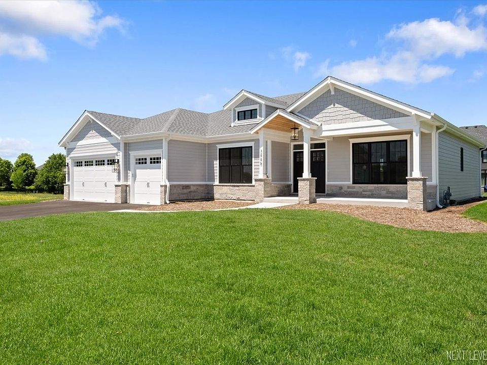 NEW READY TO MOVE IN! Get ready to be WOWED by this LUXURIOUS Keim Corp. RANCH! This PERFECTLY designed home features a GLAMOROUS Kitchen with oversized island and walk-in pantry! Spacious Great room has gleaming hardwood flooring, a custom stone fireplace with beautiful shiplap wall detail! Separate eating area with LOTS of windows and sliding glass door that opens to a covered outdoor living area! Owner's suite has HUGE custom shower and walk-in closet with direct access to separate Laundry room! Mudroom features a large built-in coat bench and walk-in closet! Many LUXURY features including custom cabinetry, professional Kitchen appliances, quartz countertops, lush carpet, decorator light fixtures, high-end finishes and MORE! MODERN exterior with double front door, large covered front porch, 3rd car Garage, deep pour lookout basement with rough in for future bath. Situated on a PRIVATE cul-de-sac lot with fully sodded yard!
