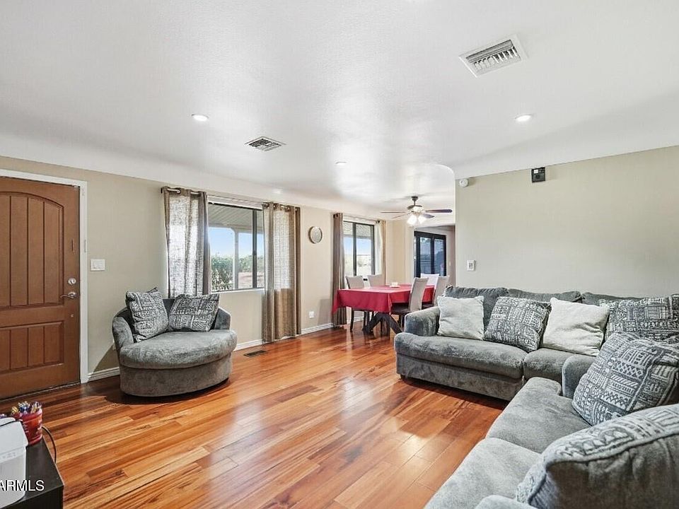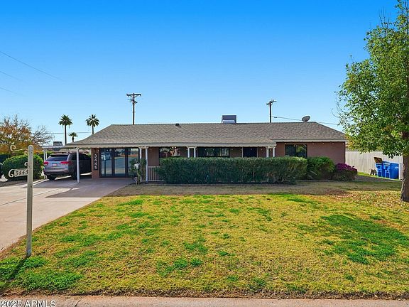 Situated on a corner lot with a low-maintenance front yard and a large grassy backyard, the property is complete with block wall fencing and a sprinkler system. Enjoy plenty of shade in both the front and back yards under the covered patios. Additional features include dual-pane windows, attractive lighting fixtures, LED exterior lighting, custom tile in the bathrooms, and custom interior/exterior paint. There is a large tandem two-car carport for covered parking. The home feels much larger than the square footage suggests and truly stands out. This home's ideal location offers easy, quick access to the 51, 202, Downtown Phoenix, and Scottsdale.