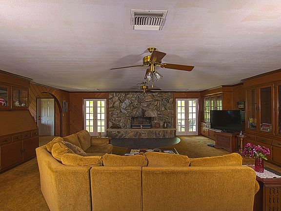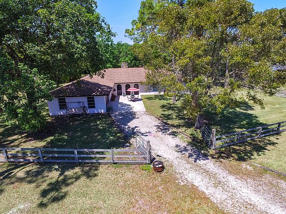 Welcome to this custom ranch home that features 10 ACRES, 2 ponds (stocked with bass, bluegill, perch and catfish), dozens of mature Live Oaks, 2,000 sf metal detached pole barn/storage area, and an operational electric fence that runs the perimeter of the entire property. As you walk through the main entry way of the home you will be in awe of the oversized family room and large custom fireplace made with imported Silver Creek stone. This unique family area features beautiful Cypress tongue & groove walls. The home features a formal dining room, office/den, game room, and a country kitchen with breakfast area. All the bedrooms are large with beautiful views of this gorgeous 10 acre property. The 2 car garage features a new door & 1/2 bath. With minimal work this home will be a show piece!