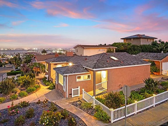 Nestled on a sprawling corner lot high atop the hills of Point Loma, this remarkable property offers unparalleled panoramic views of the entire San Diego skyline, bay, ocean, and the majestic mountains beyond. Unrestricted by height limitations, this home presents an exciting opportunity for a second-story addition, promising even more breathtaking vistas. The single-level residence boasts 4 spacious bedrooms and 3 well-appointed bathrooms, encompassing approximately 1,540 square feet of comfortable living space. Enjoy incredible sit-down views from the inviting living room, perfect for relaxation and entertaining. The property features a generous two-car garage, offering the potential for an Additional Dwelling Unit (ADU) installation, ideal for expanding your living space or generating rental income. Additionally, a basement provides ample storage and easy access for maintenance. This is a rare opportunity to own a piece of Point Loma paradise with boundless potential and stunning views that will leave you in awe.