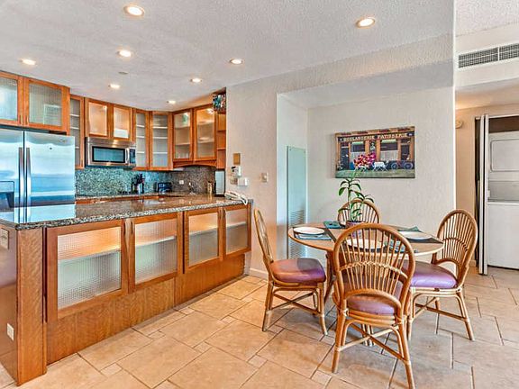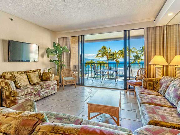 Kaanapali Shores 359 and 360, they are the best of the best, each just steps away from the ocean. It is rare for one of these desirable oceanfront units to become available for purchase. It is a once-in-a-lifetime opportunity when two adjoining prime oceanfront units become available at the same time. Kaanapali Shores 359 and 360 are each beautifully renovated two bedroom units, and can be purchased together or individually. Relax, rejuvenate, and enjoy tropical paradise in luxury in Kaanapali Shores 359. In-suite amenities include central A/C, flat-screen TV in each room, wi-fi, and washer and dryer. Completely remodeled, the spacious interior floor plan features the elegant flexibility of open space. The state-of-the-art kitchen is equipped with granite countertops, custom cabinets with beveled glass doors, and added amenities for your convenience. The living area features Italian porcelain tiles and panoramic ocean views. The master bedroom suite also has breathtaking ocean views, you hear the waves as you sleep, and you awaken to a peaceful Maui sunrise. Its bathroom is designed with a walk-in custom tiled shower with body jets. The private lanai overlooks the ocean, the palm trees, and the resort courtyard, and from December through April, you may see humpback whales! Aston Kaanapali Shores is located on 10 extraordinary acres of Maui beachfront property. Dreams come true here, with a magical balance of Maui fun in the sun, peaceful tranquility, harmonious contemporary dcor, and delicious dining, with two pools, hot tubs, beautiful landscaping, a salon and spa, a sauna, a fitness center and tennis courts, and the Beach Club Restaurant & Bar. Aston Kaanapali Shores offers the finest world-class services, expertly combining the highest standard of comfort with a spirit of aloha. Guests absolutely love this property! And vacations surpass all imagination! Both KS 359 and 360 have five-star ratings with VRBO.