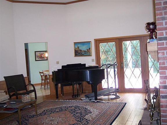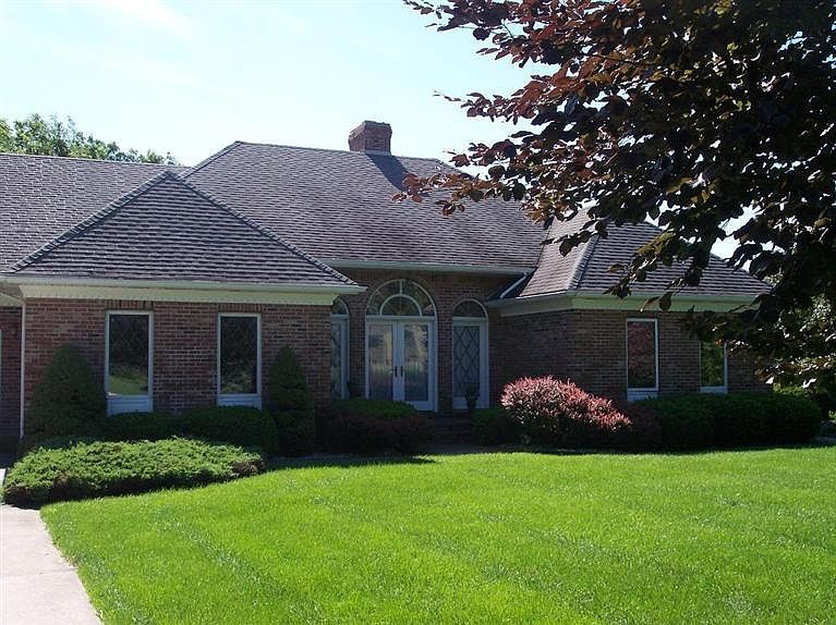 This home has great curb appeal. Solid brick ranch sits on a lovely 3/4 acre manicured lot.Home has great room with a dry bar, mason fireplace,hardwood flooring and 12'ceiling and doors leading out to large cement patio and beautiful partially wooded backdrop! The rest of the rooms all have 9'ceilings so home looks extra spacious.There is a formal library, and 3 bedrooms with the master suite on the opposite side of the home separate from other bedrooms with doors leading to patio to enjoy your morning coffee. Main floor laundry attaches to 1/2 bath off the eat in kitchen. Large formal dining room as well. The basement is unfinished with lots of potential. The garage is 2 car plus extra space for a golf cart or your lawn equipment. The home has a built in sound system . This home was built by its present owners. There are newer mechanicals too. A rock solid home priced to sell in beautiful Tiffany Woods Subdivision.