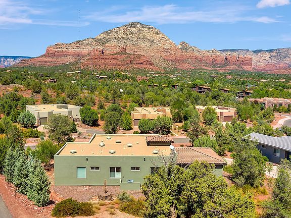 West Sedona Beauty located in one of the most desirable & convenient locations in town. Home has 2 bedrooms plus a den that could be used as a 3rd bedroom, 2 1/2 baths and 2249 SF. Beautiful Red Rock Views from all common areas ( Great Room, Dining, Kitchen) & the Master Bedroom. Also has two wonderful covered patios with RR views. All views are to the north. The home is very well maintained and move in ready. There are custom window coverings throughout. The home is sited on a high ridge on a professionally landscaped corner lot, both of which add to the occupant's privacy. Larger two car garage with storage space. High efficiency HVAC & Nest thermostat help keep the electric bills low. This is a great opportunity for someone looking for a well maintained, mid-sized West Sedona home with